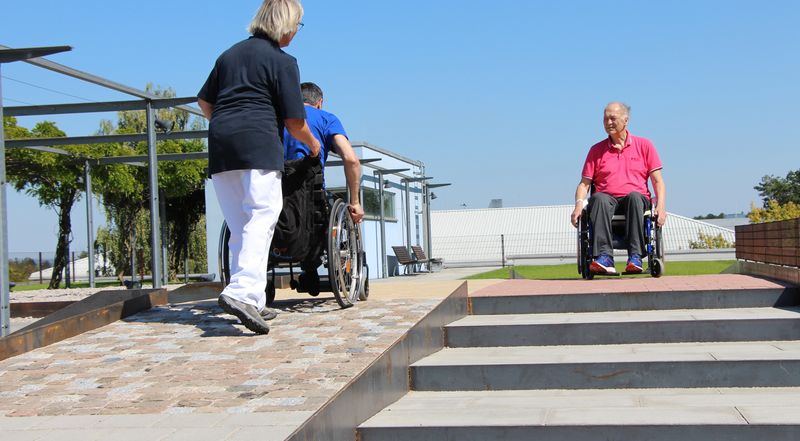 The new training course on the roof garden of the Langensteinbach Clinic was financed by the non-profit Manfred Sauer Foundation. It wants to contribute to a barrier-free coexistence of people with spinal paralysis and pedestrians.